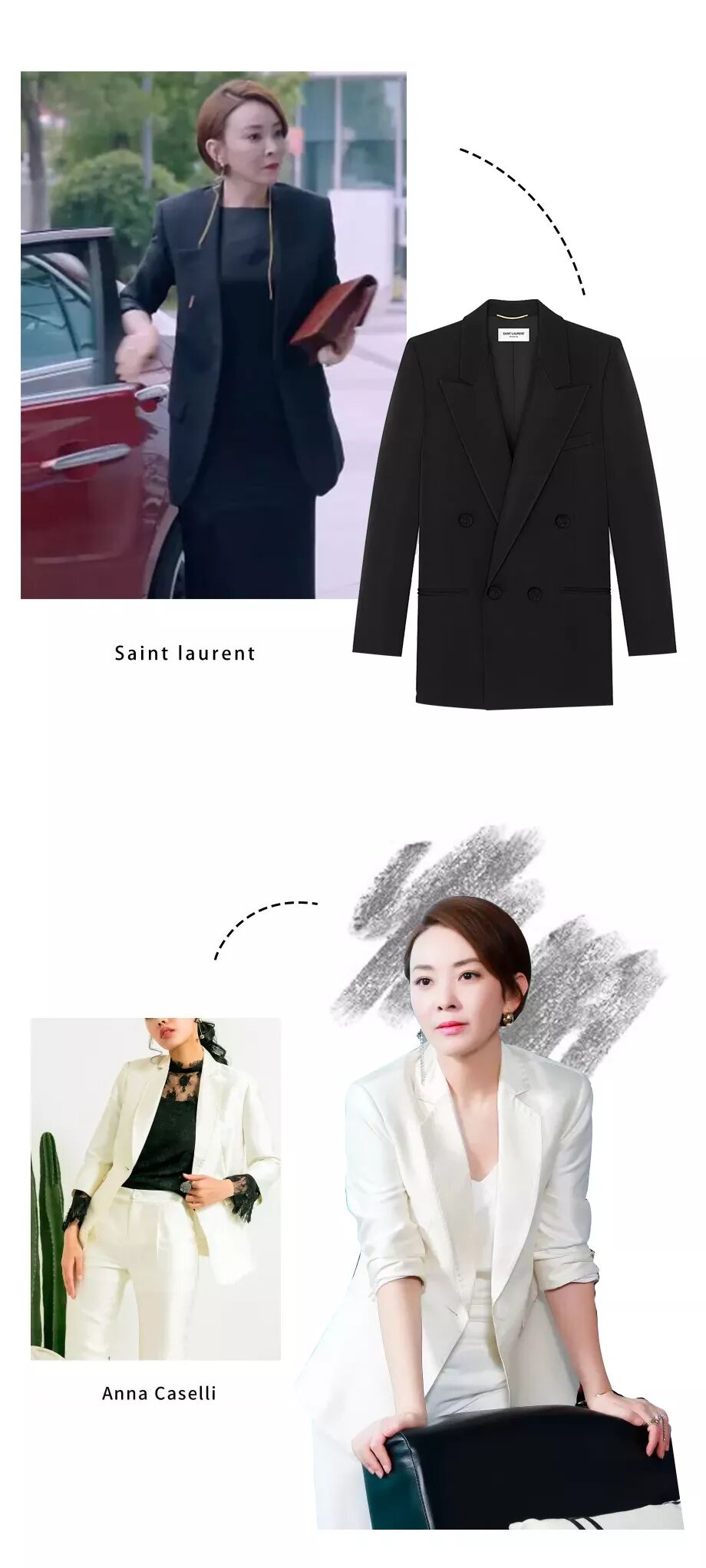 而且从以上几个look能看出来,这位“白富美”非常喜欢西装:修身的、廓形的,包括吸烟装她都有在剧里不断露出。对于她这样成功的、靠自己的大女主人设,西装的确是给自己形象加分的一件利器。所以,小西装是每个职场女生的必备哦