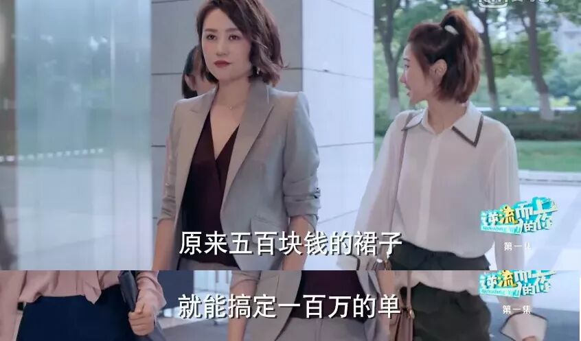 为了从一居室换到两居室、为了能赚更多的面包给自己和未来的孩子,她每天跟个战斗机一样周旋在各个客户之间。第一集刚出场的时候就用一条500块的裙子搞定了一单100万的case