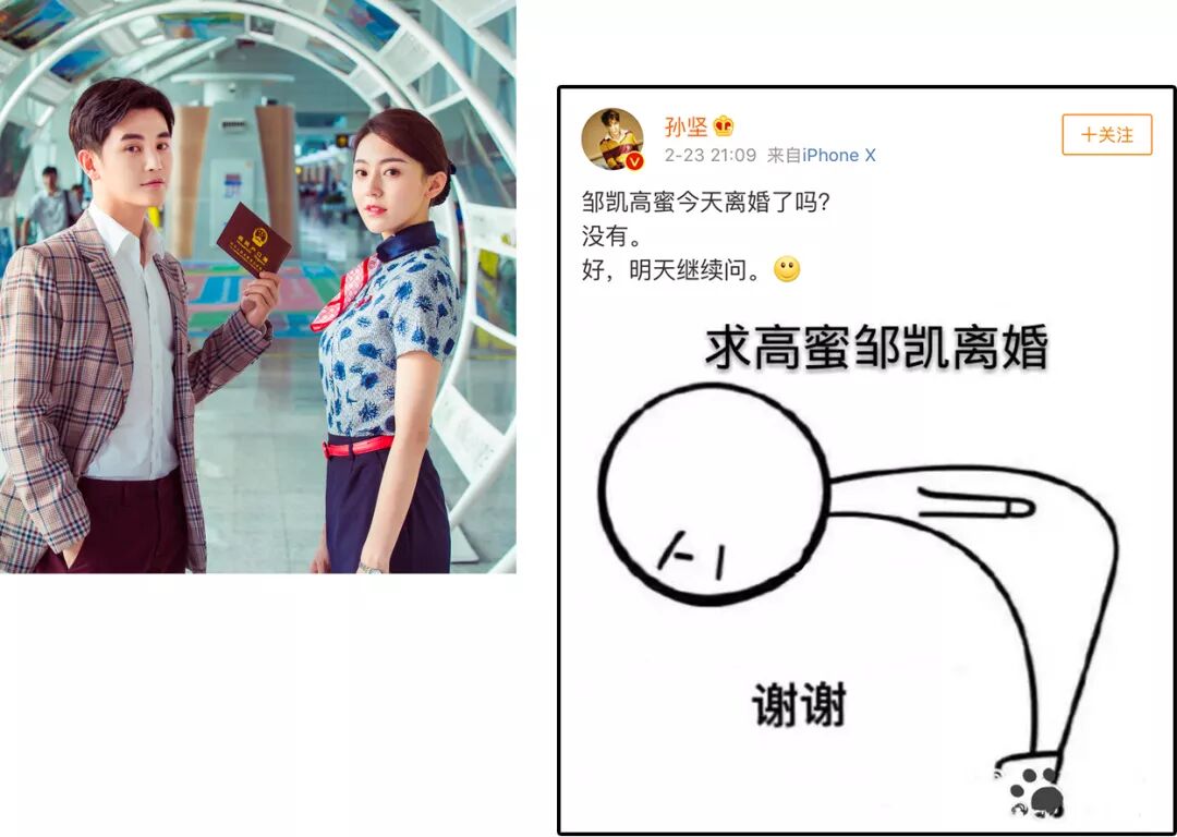 现在的粉丝都这么刚的吗?直接劝明星离婚?直到点进去才发现,原来是孙坚在新剧里和三生三世的“素锦”新组成的荧幕cp被大家纷纷“劝散“啊!