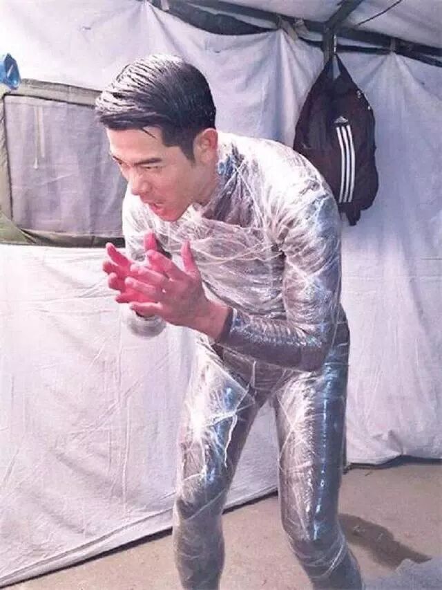 反季节拍摄或者走毯大多穿的单薄,暖宝宝又容易暴露,怎么办呢,只能裹上保鲜膜了。