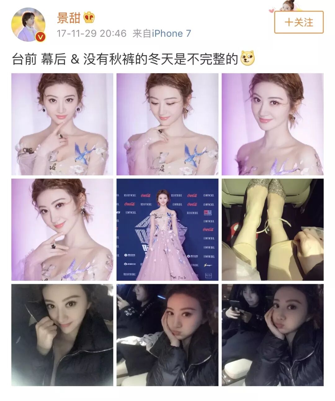 和应采儿、baby同期时,需要在冬天穿礼服录制,三个人更是不约而同穿上了秋裤!