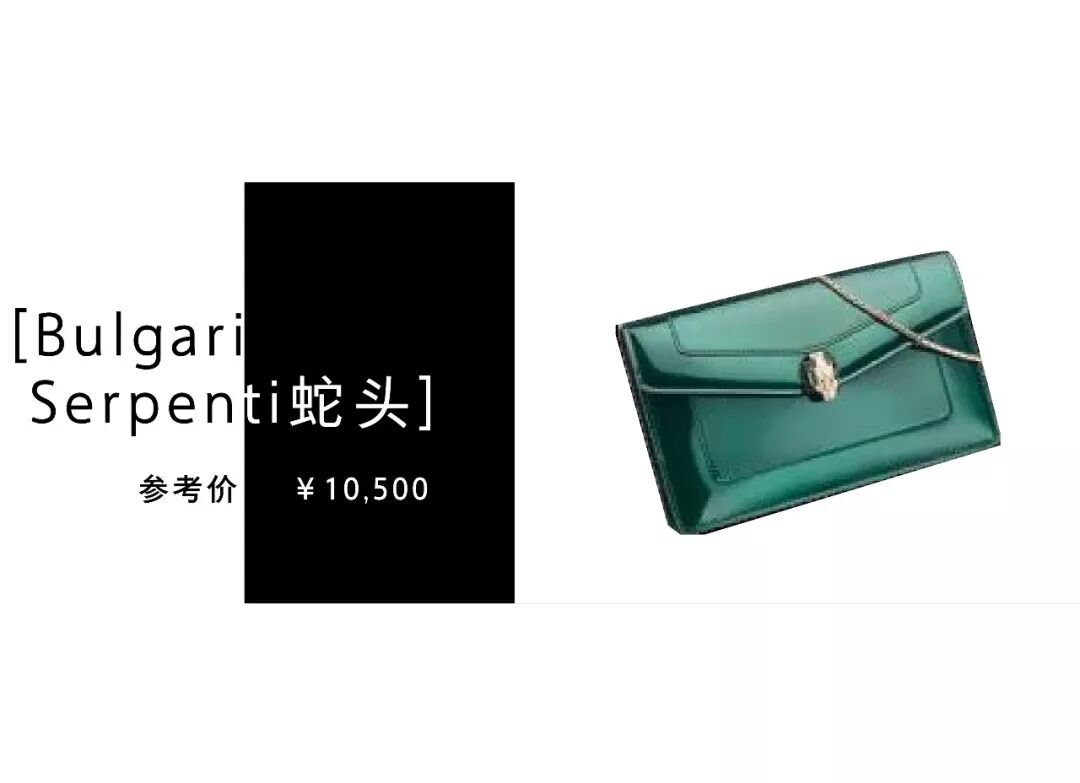 这款蛇头包只能用美得惨绝人寰来形容了!绝对是宝格丽必入款,这颜色也太好看了吧!经典的祖母绿搭配蛇首搭扣,简直就是贵妇的象征。