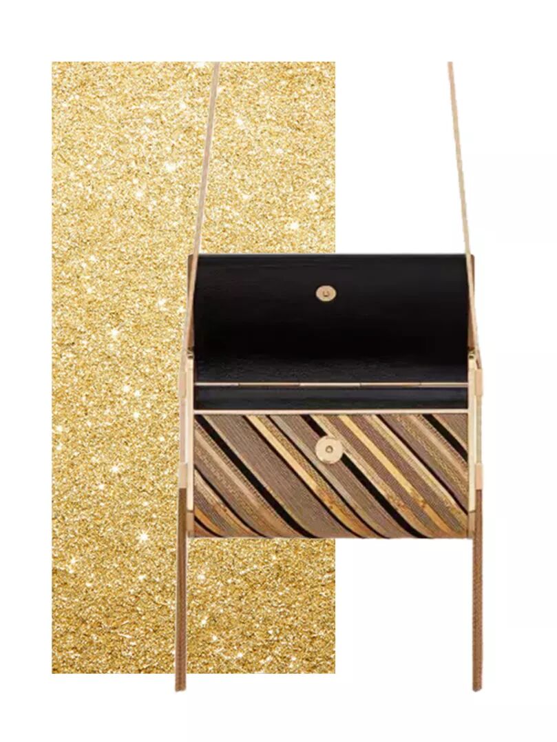 在这两款里,我觉得金色的Kate还算是比较实用一点的,就算不去趴体平时背也不会很招眼,搭一件黑色上衣+牛仔裤也能很好的中和这只包浮夸的风格~
