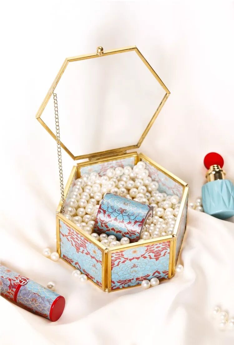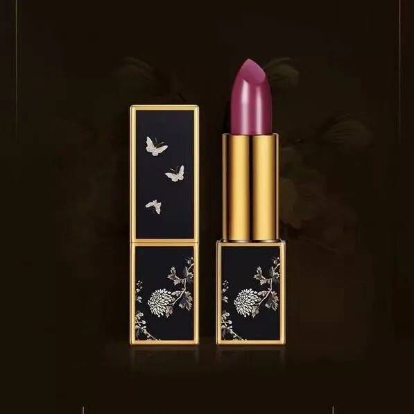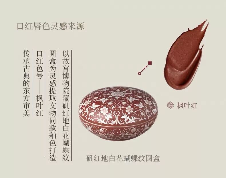 唇色灵感来源矾红底白花蝴蝶纹圆盒,传承古典东方美。