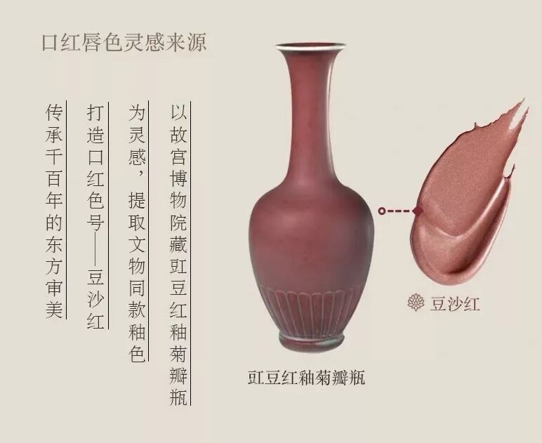 唇色灵感来源于豇豆红釉菊瓣瓶,色调淡雅,温婉宜人。