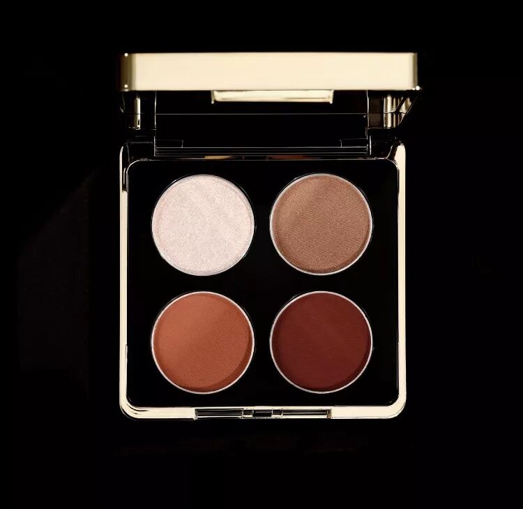眼影盘的四色分别是浅金色、浅咖色、橘色和褐色,除了浅金色是珠光质地,其余三个颜色都是哑光质地,很适合冬季,高级感十足。