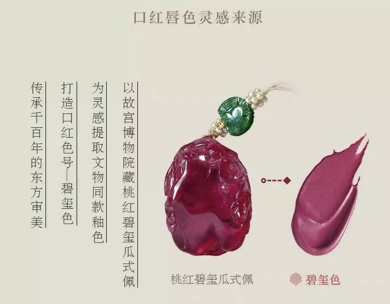 唇色灵感来源桃红碧玺瓜式佩,气质温婉,很适合用来打造咬唇妆。