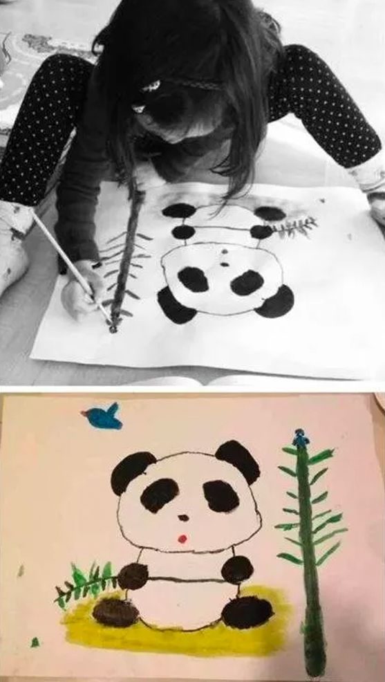 不得不承认,她是有绘画天赋的。所以李亚鹏也通过培养李嫣的爱好,使她从这些“特长”里获得更多的自信。在她的画里,世界都是可爱的,连动物的眼睛都这么清澈干净。