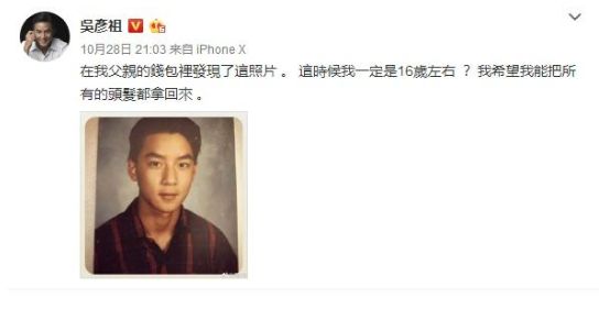 其实并不是只有小编一个人这样好吗,就连男神吴彦祖前一阵也发微博表达了自己对发际线的恋恋不舍: