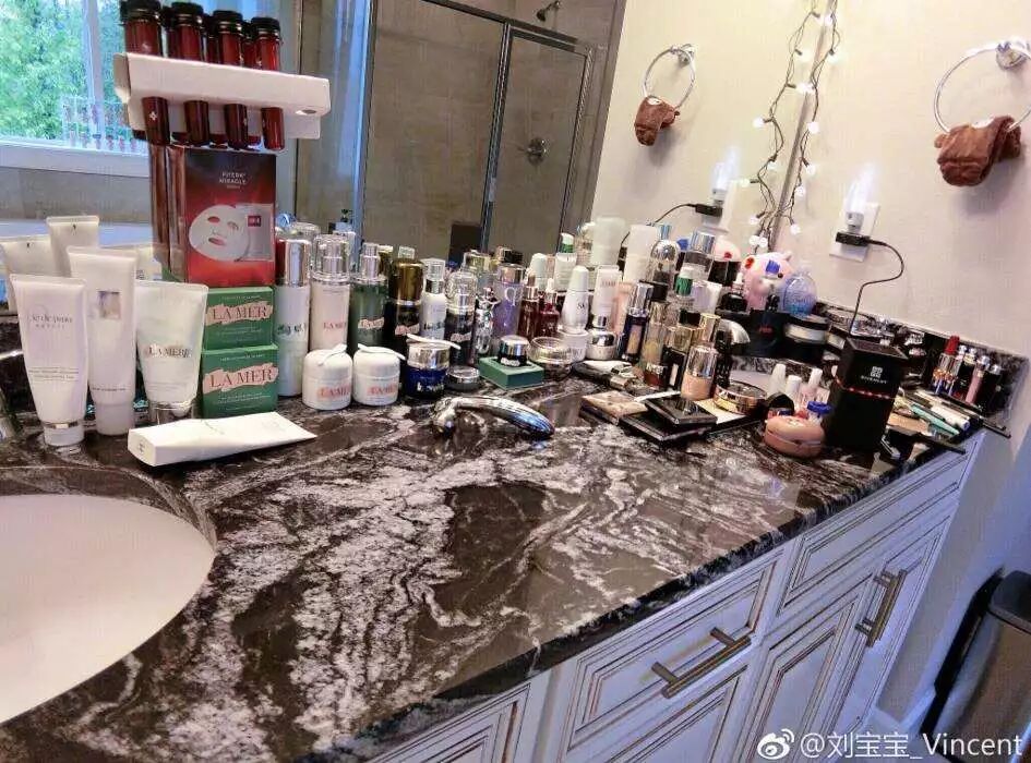 天后王菲在很早之前就被女儿李嫣曝光过梳妆台,里面满目淋漓的护肤品,有便宜的也有贵价的