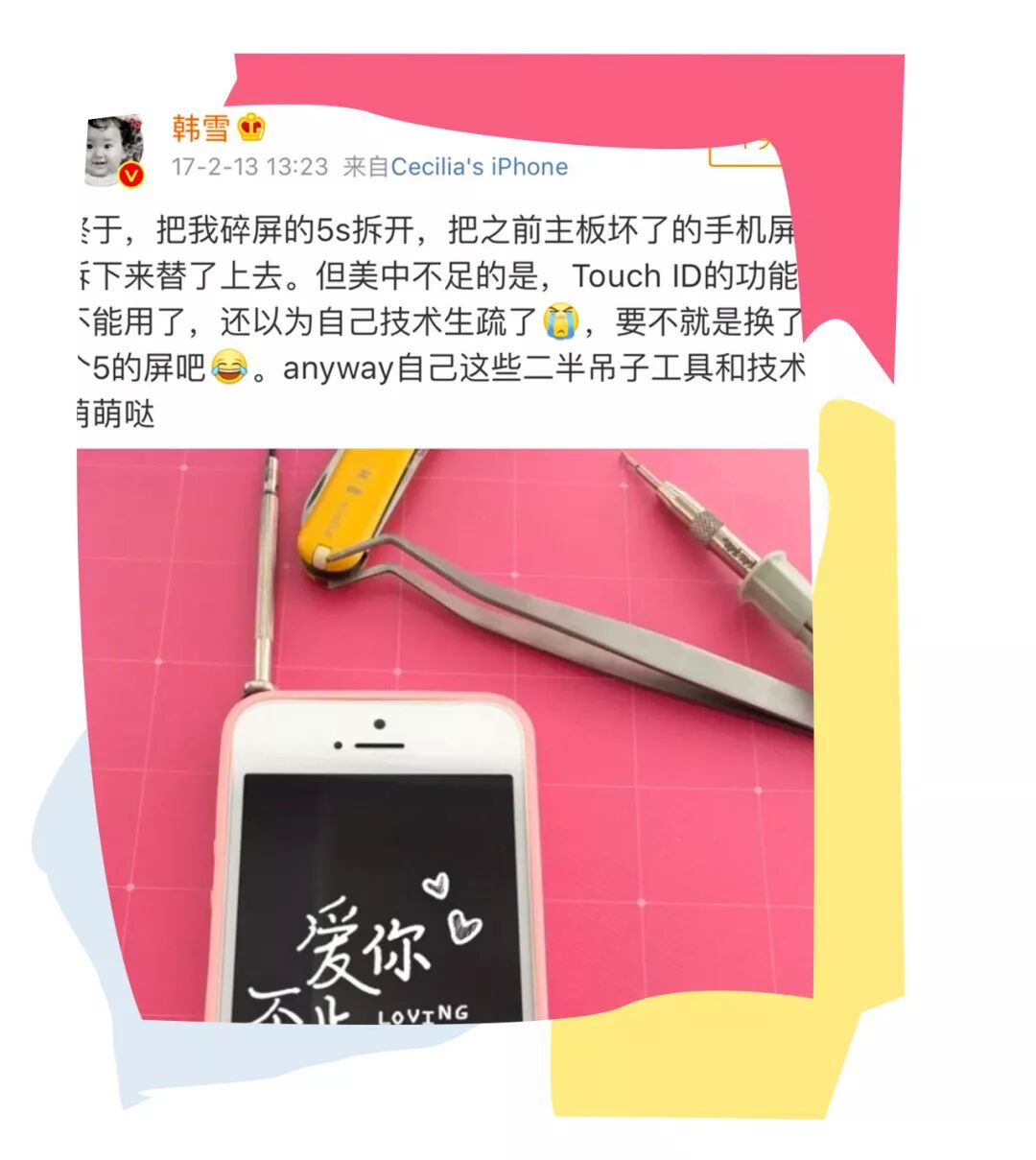 众所周知,韩雪是个电子科技达人,日常掌握着理工男必备绝杀技能-修手机