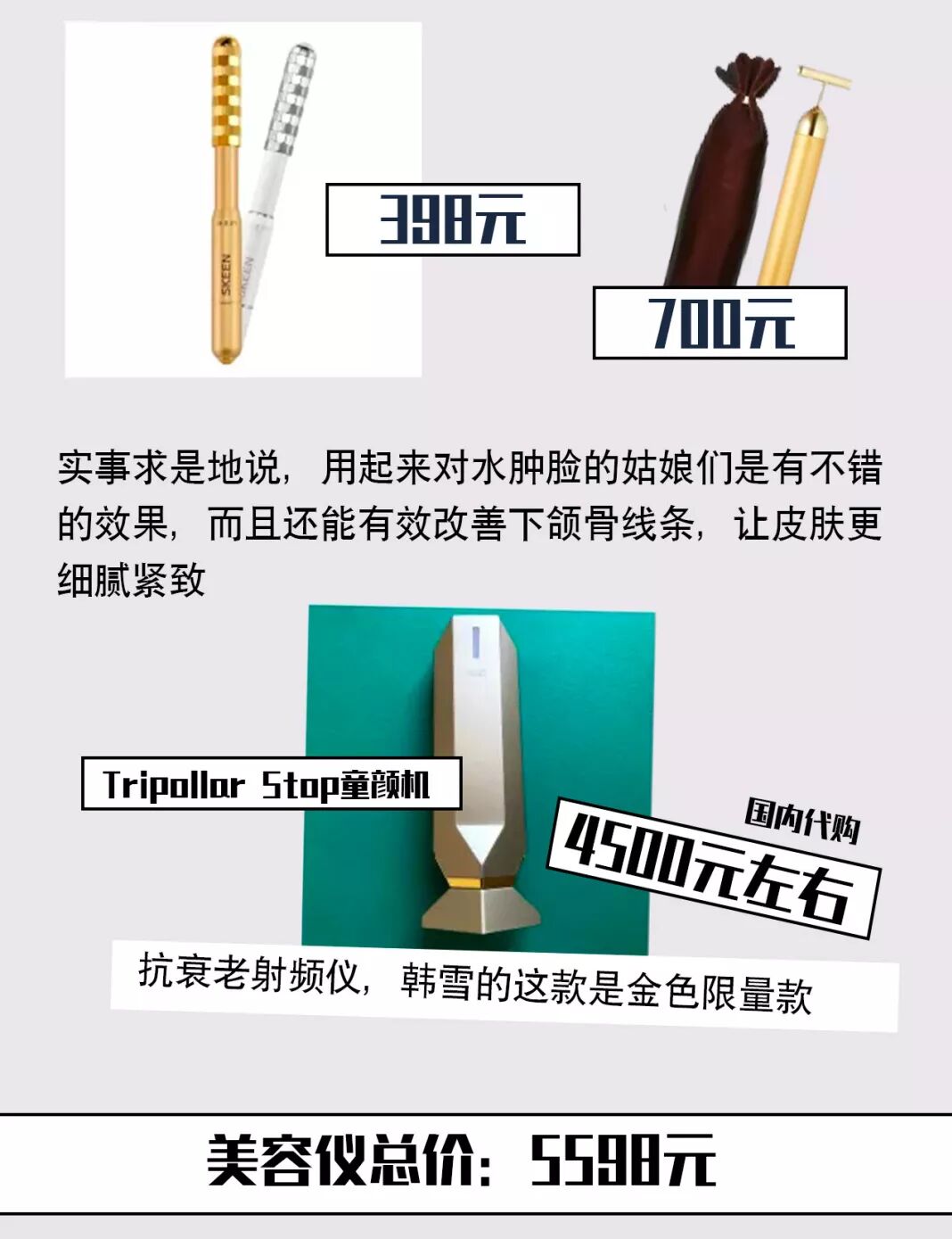 总得来说,韩雪光是日常清洁仪器开销就在4000元左右 。可以说是非常注重皮肤由内而外的保养了!