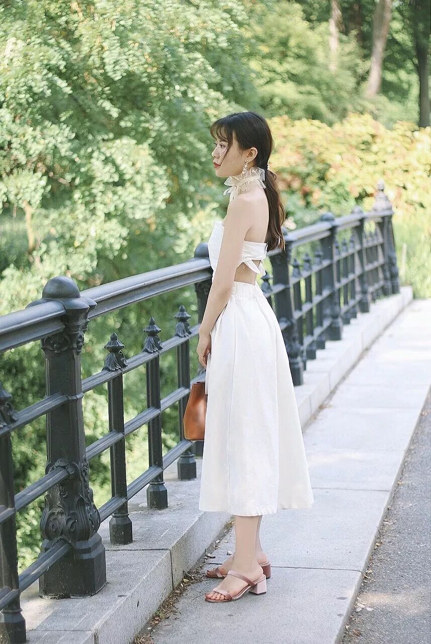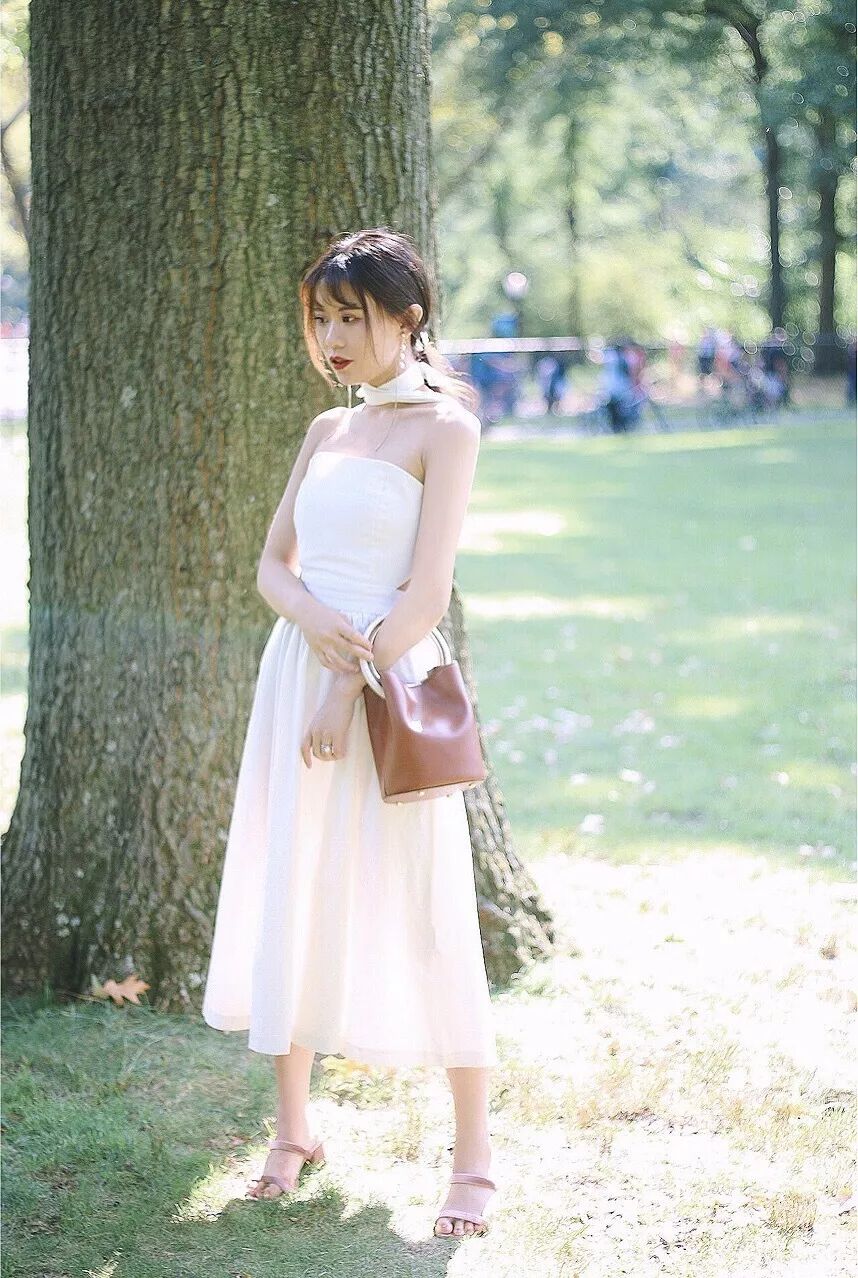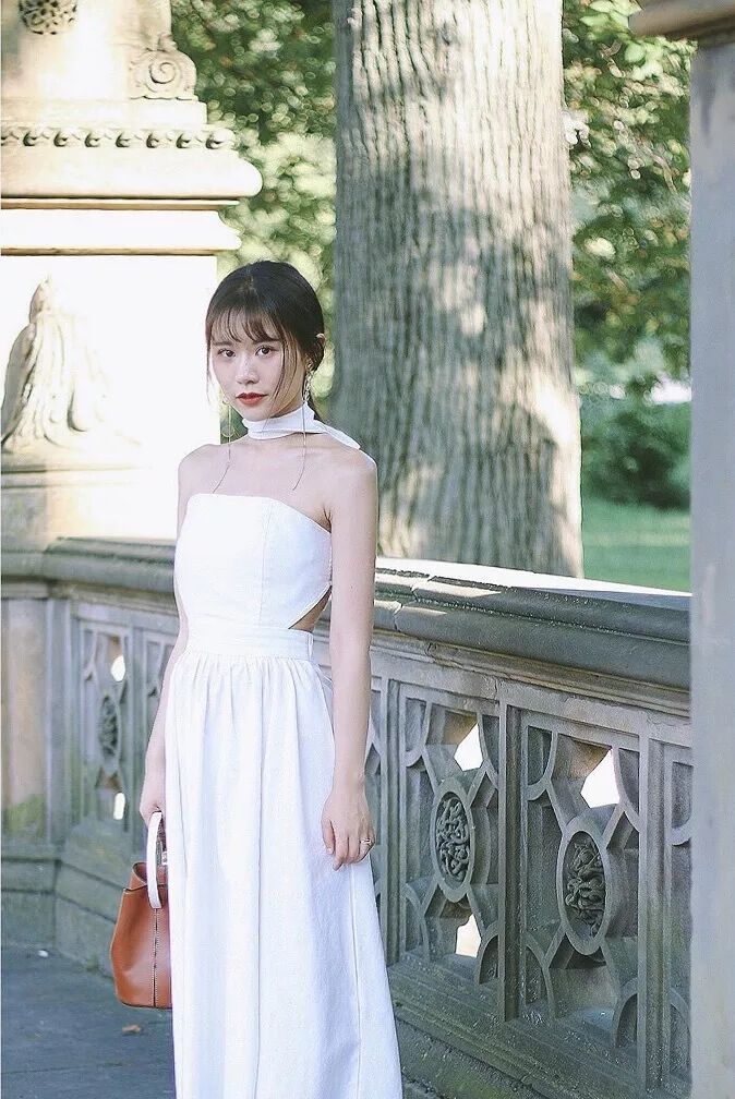 LOOK2:度假当然少不了连衣裙,A家这件露背+白色的设计我非常喜欢,少女感里带着性感。