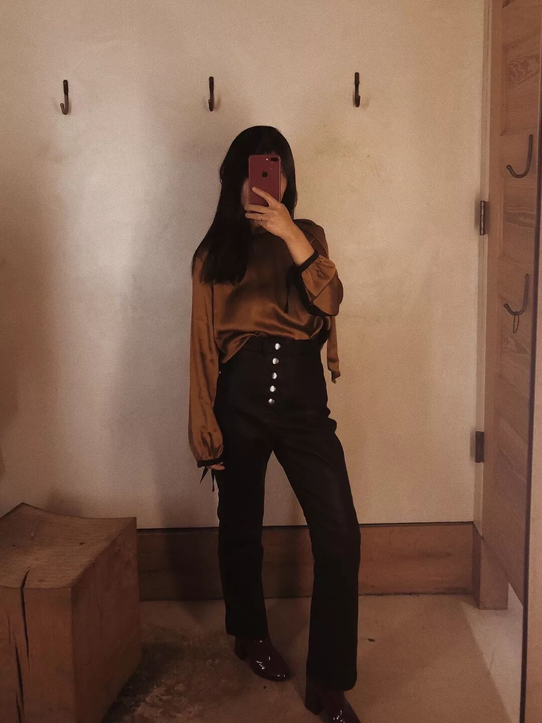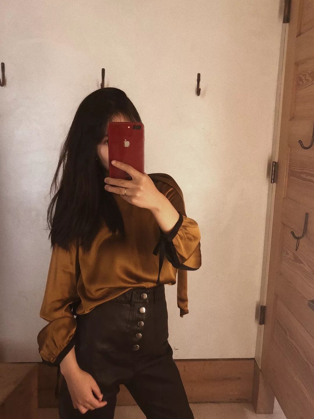 瞬间被种草的一件焦糖丝质上衣!不愧是我一眼看中的上衣,丝滑的质地看起来就很高级~焦糖色是我一直很喜欢的颜色,像浓郁的太妃糖,显得人白皙又有气质。