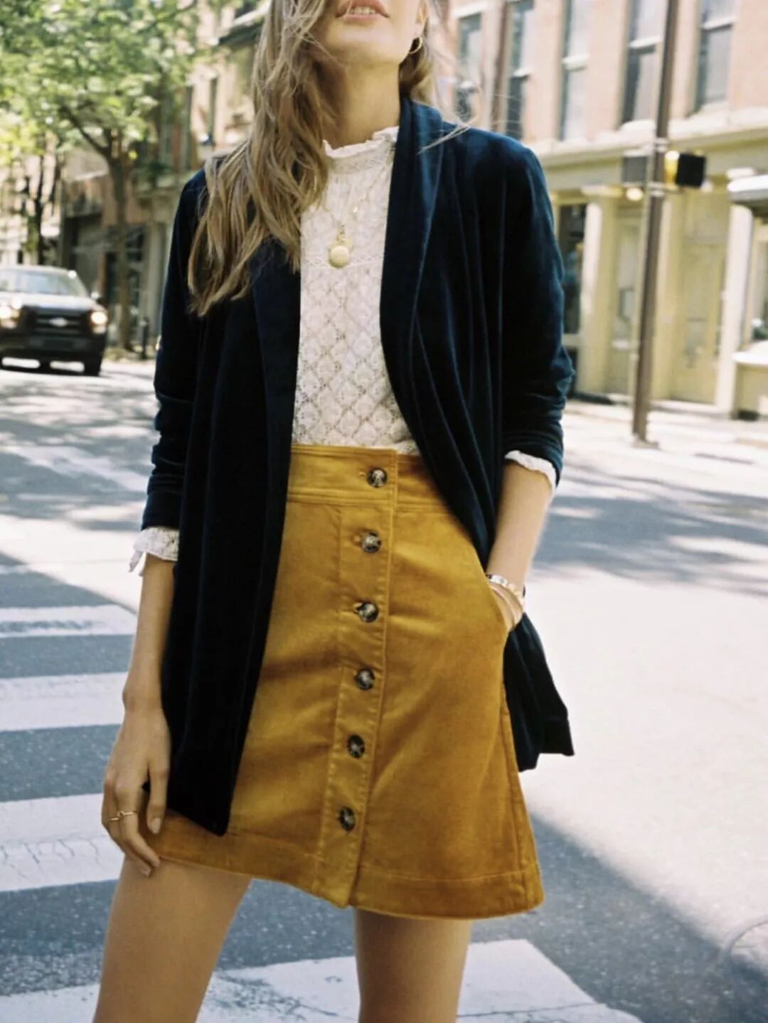 为了中和上衣的女人味,下装我选择了另一件今年大热的单品—灯芯绒裤。工装的版型非常非常显腿直,答应我如果觉得自己腿型不好看的妹子,一定不要错过这样的裤装,能掩饰一切腿型缺点。切记,带两分宽松的裤腿比紧紧包住的更显瘦!
