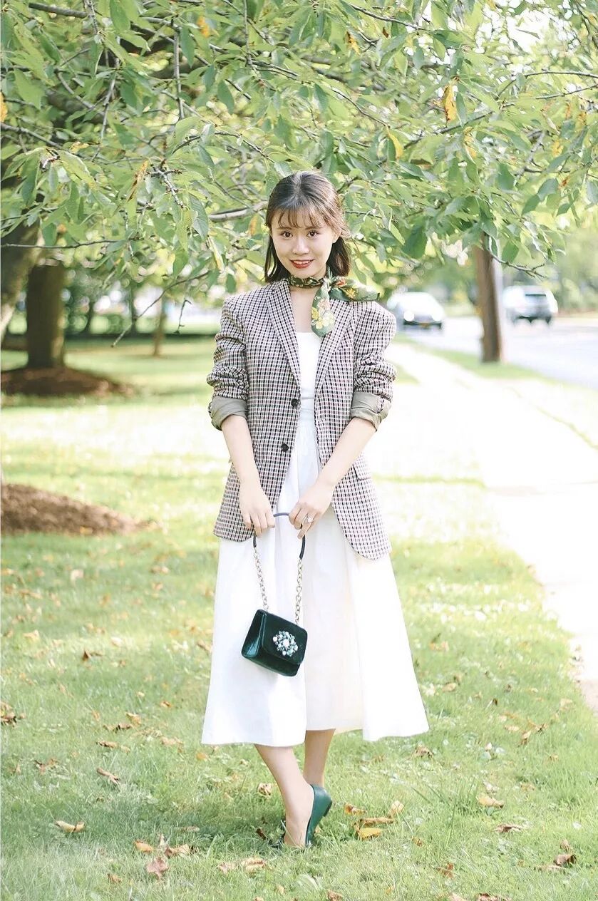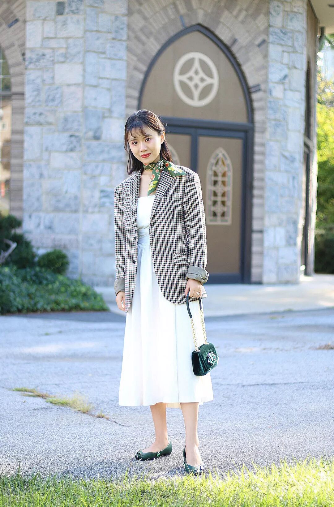 LOOK3:A家的小丝巾给普通的一身look增加亮点