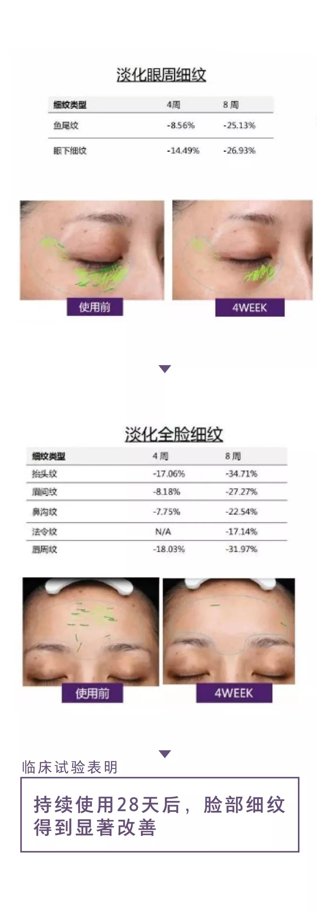 除了眼纹,它还对淡化法令纹、额头皱纹有效!反正性价比超级高,一只在手,全脸都搞定,当然舍得用啦~只需4周就能看到自己变年轻啊,这个宝物我要囤起来!