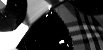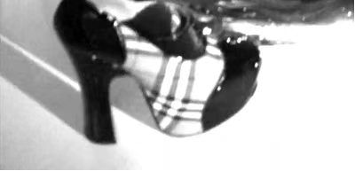 乌漆抹黑的,只能隐约看到Burberry经典格纹图案的影子,以及一双一秒扫过、极具朋克感的恨天高。