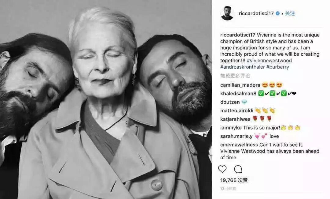 就在几个月前,英国最大的老牌时装屋Burberry 宣布与时装界的「朋克之母」 Vivenne Westwood进行合作。Burberry创意总监Riccardo Tisci的一篇推送收获了无数个赞(当时我也表示无限期待的)。