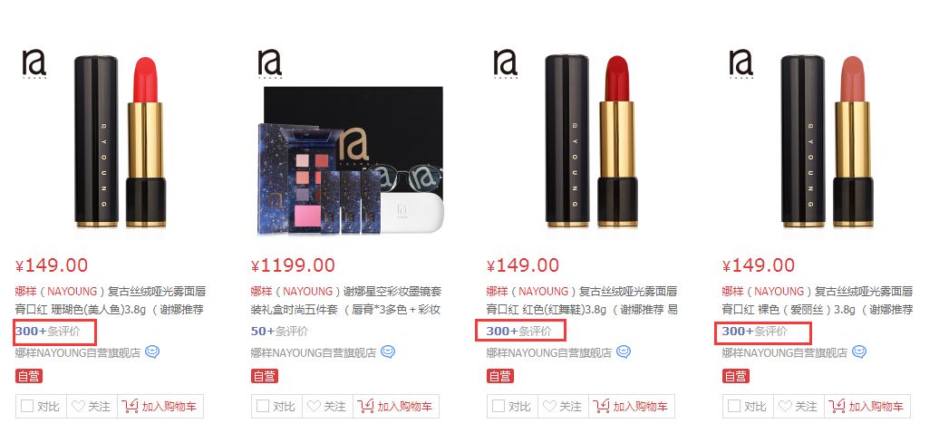 娜姐第一波上新的美妆产品是限定版的口红和眼影盘。价格分别是:口红149元/支,眼影盘199元/盒。还别说居然买的不错,买家反馈积极,评价300+