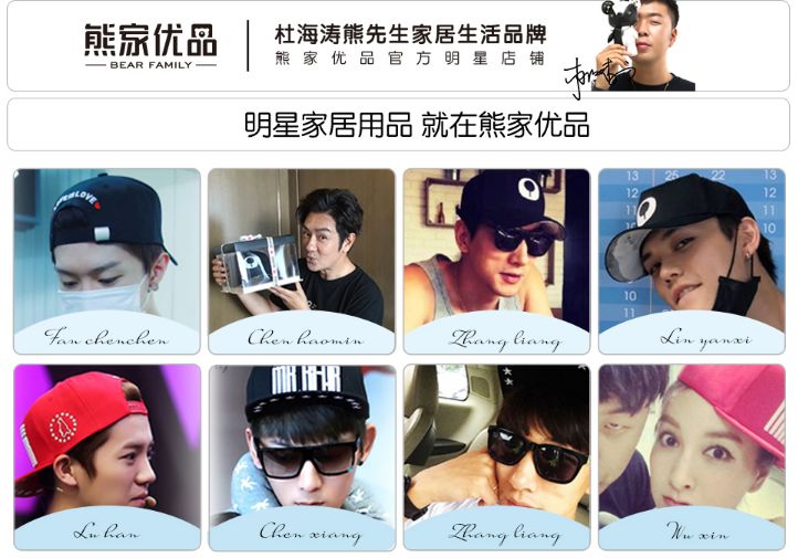 其他:吴昕(淘宝店:小飞象Orfila)、光良(淘宝店: Highfun嗨翻)、刘璇(淘宝店:平衡派balanpie)、牛萌萌(淘宝店: 牛萌萌style)、林志颖(淘宝店:JR店)、张馨予(淘宝店:miss zhang)……