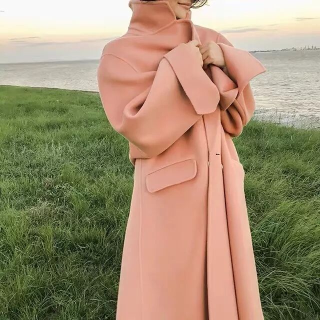 珊瑚橘看上去自带温暖明媚的滤镜,鲜艳的颜色难免在视觉上产生膨胀感,所以在款式上,我们尽量删繁就简。
