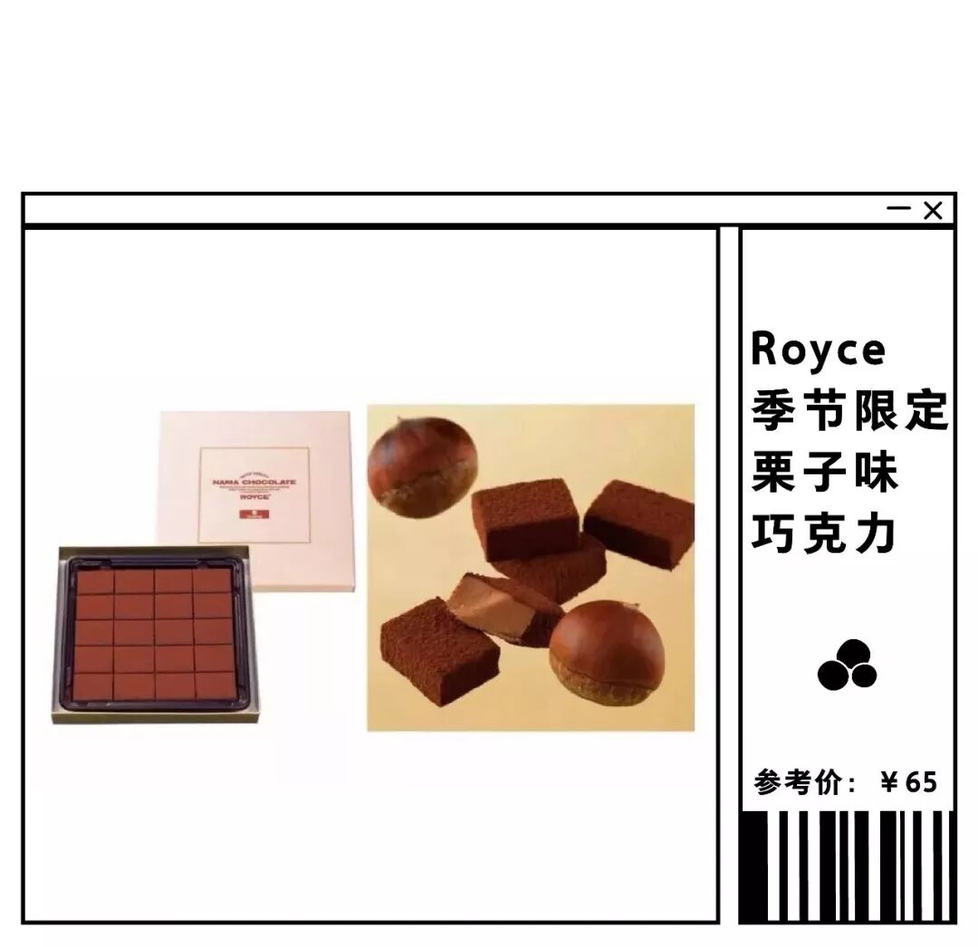 Royce巧克力迷们,这次算有口福了,据说很多人都说这次的栗子口味超级适中,不甜不腻的,推荐推荐!