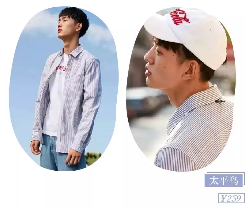 太平鸟的这一款条纹衬衫的也很好看,穿起来比较干净。但适合瘦削一点的男孩子。