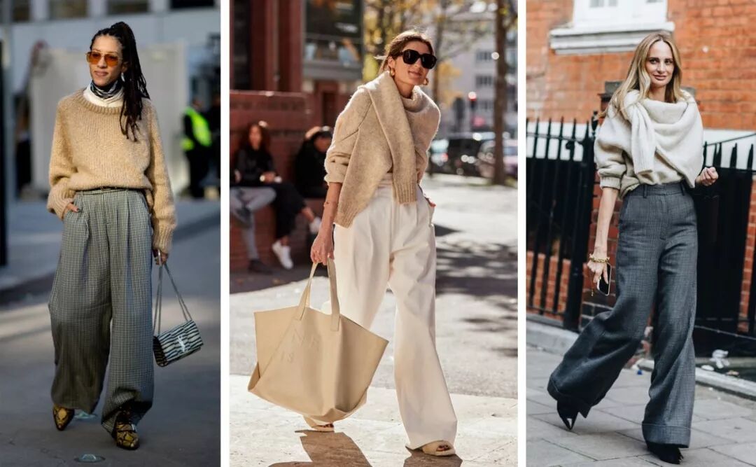 毛衣+阔腿裤、卫衣+阔腿裤、西装+阔腿裤……怕冷的你可以在阔腿裤里面藏N条袜子或者秋裤,看着单薄但却超级保暖。