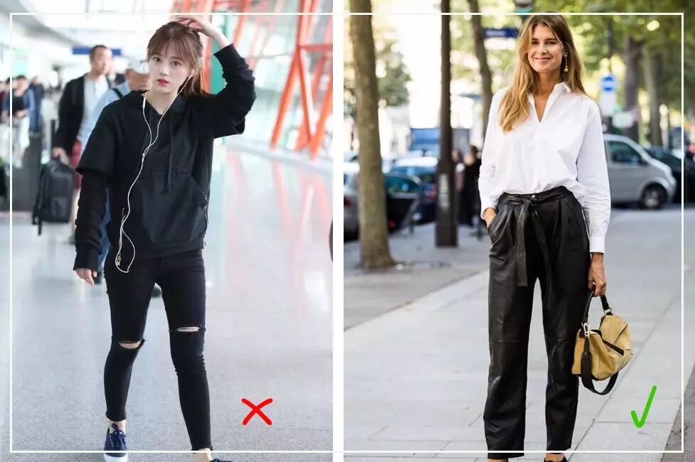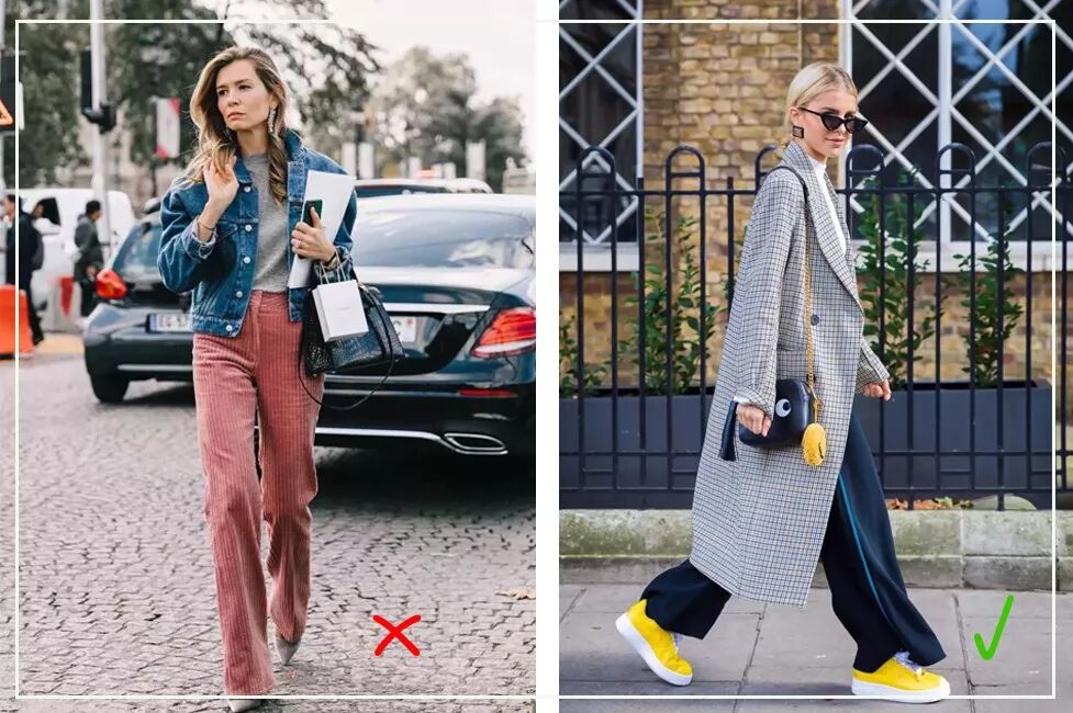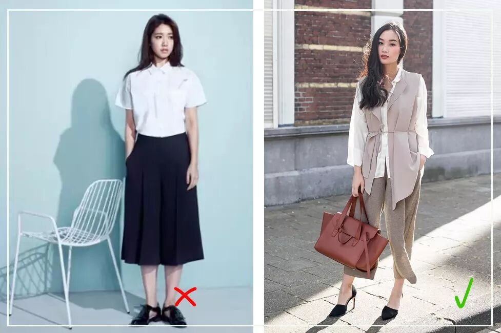 如果你没有天生大长腿,请自动远离五分裤及七分裤。若想要穿搭出显瘦显高的效果,那必须是能露出一截脚踝的九分裤,再短也不能低于八分裤。