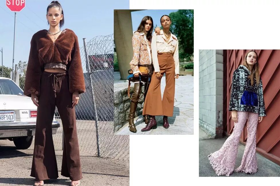 喇叭裤具有浓厚的复古意味,由于裤腿宽阔,所以非常适合小腿粗的人穿。这种裤型有很多低腰款,但切记高腰款才是显瘦显高的~