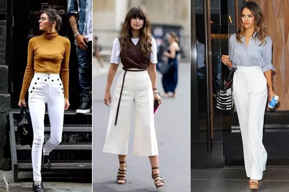 今年真的很流行白裤子的各种搭配,上身清爽,还很减龄。搭配简单的打底或者毛衣都特别好看,而且不挑颜色。