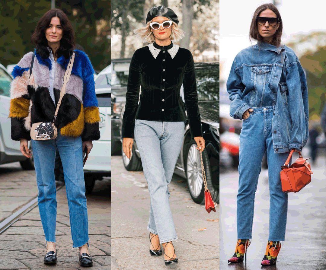 牛仔裤的颜色有很多,放在冬日,宝蓝牛仔、深蓝牛仔、黑牛仔这3种色系会比浅色系牛仔更好搭配。
