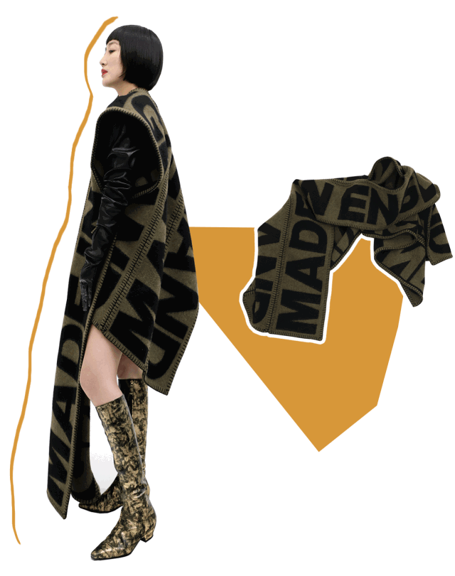 像买君那个“大毛毯”就是这一季PORTS家的“爆款”来的,很多明星都有上身。什么梁洛施啦