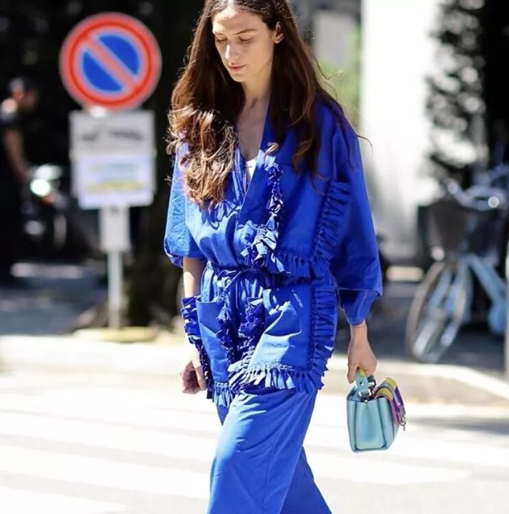 不过话又说回来,日常出街还是不太适宜“真空”的,所以要么就得有一件优秀的内搭来反衬这些字母,要么,就只能用一件亮眼的下装,用强烈的撞色表现它的美