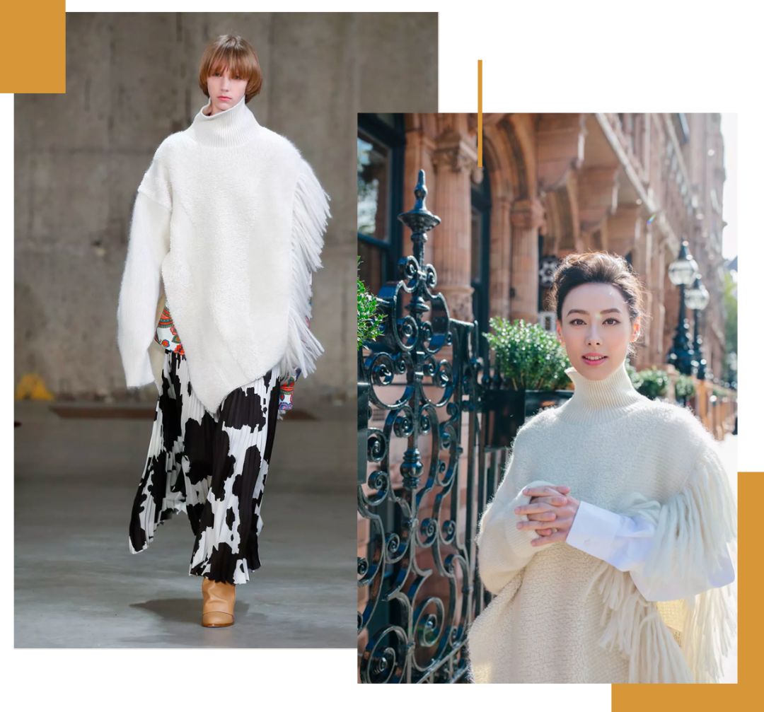 另外一件梁洛施同款的流苏毛衫也挺值得下手的:起堆的流苏,冬天穿着给人的视觉效果就特别暖