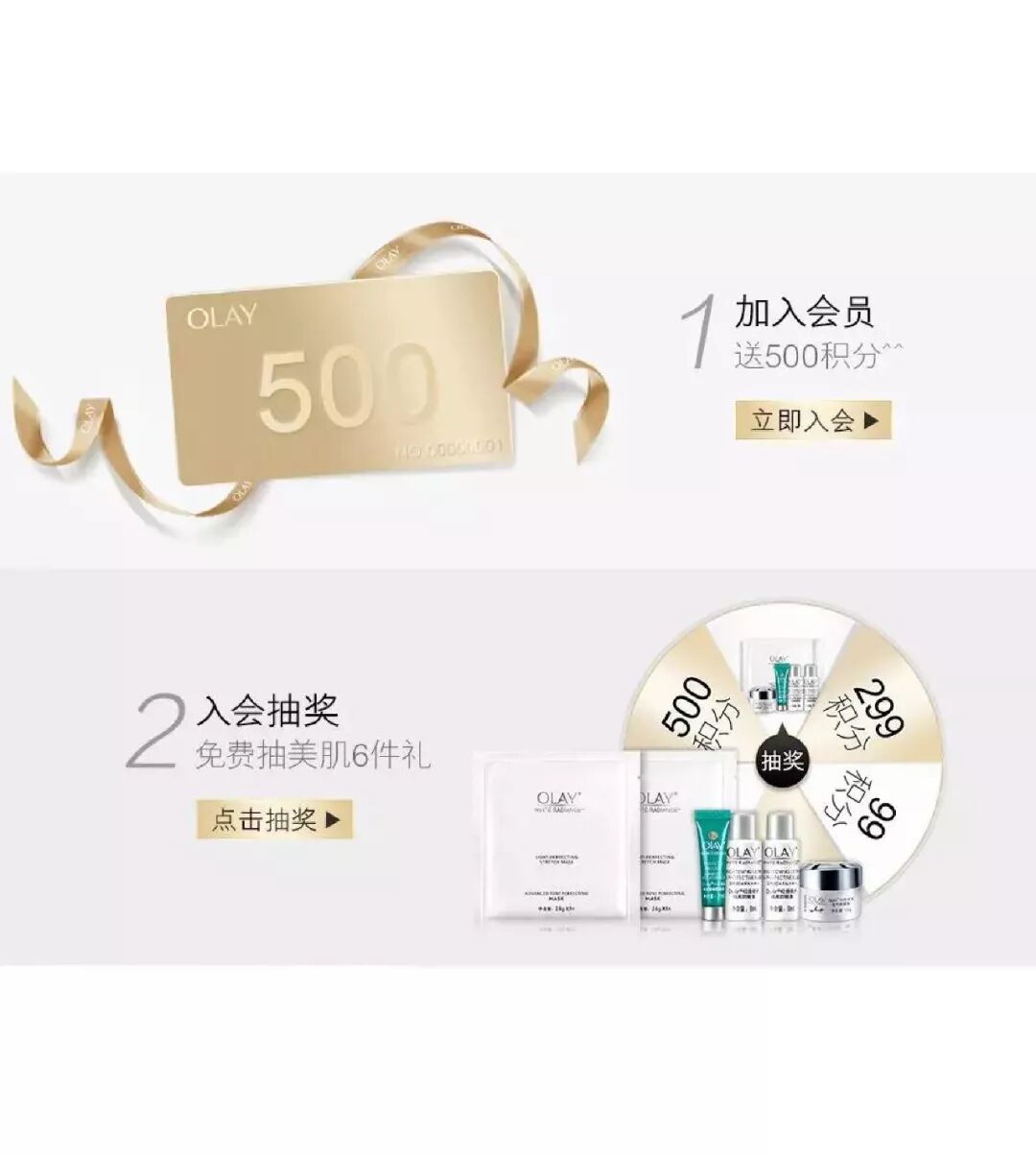 对啦,购买之前记得绑定Olay会员卡喔,加入会员即赠500积分。还能免费抽奖~