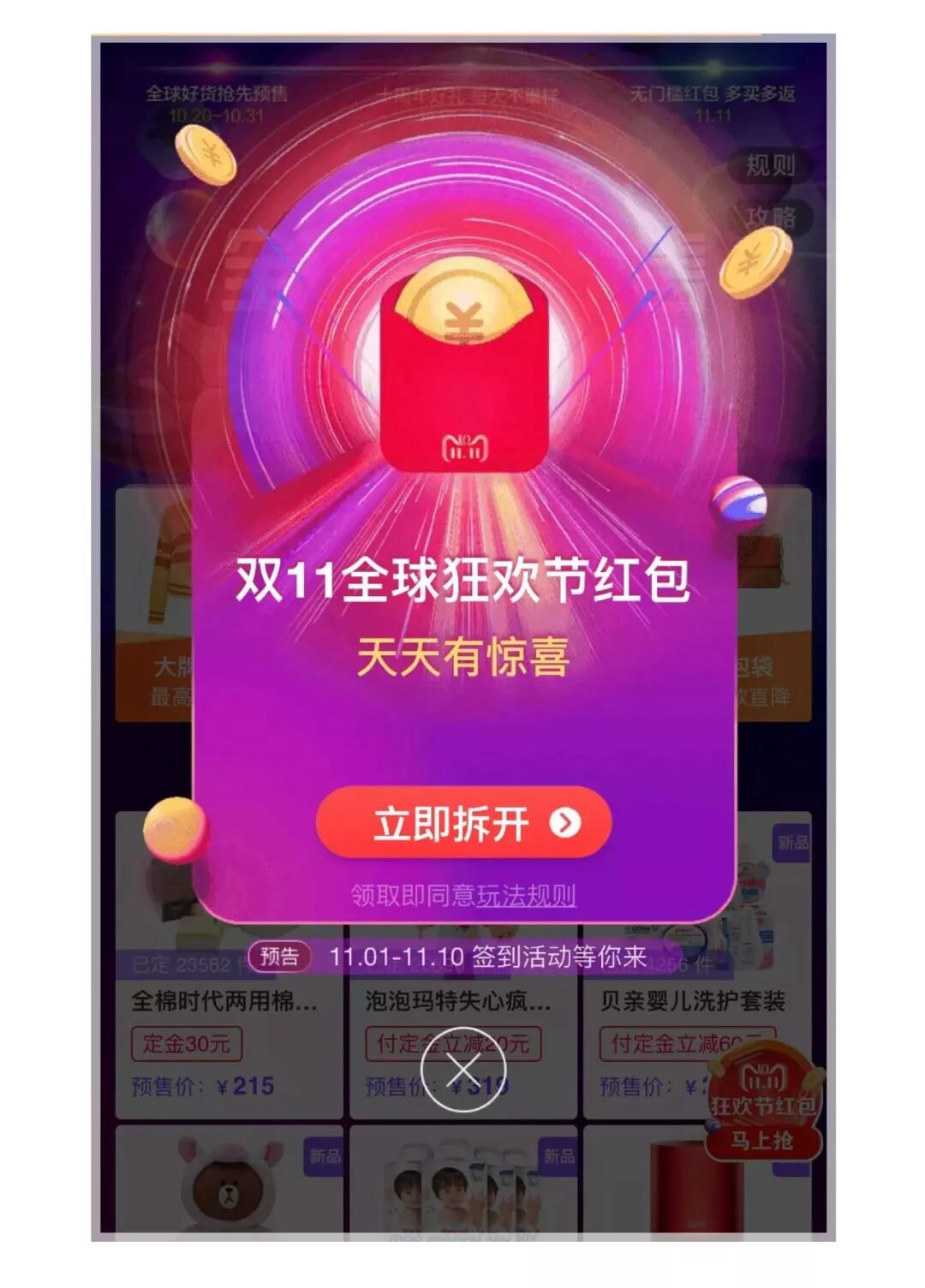 另外,在11月11日当天,大家白天没事的时候也可以多刷刷主会场或者店铺,很多商家会发放各种大额券、福袋,天猫去年还有回血红包啥的。