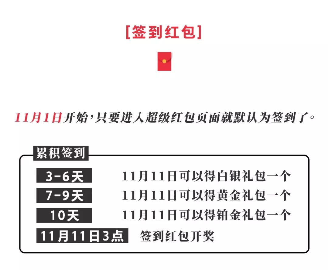 其中11月1日、3日、7日、10日、11日红包发放量会大幅提升,大家定好小闹钟。每天坚持的话,领个十几块没问题。