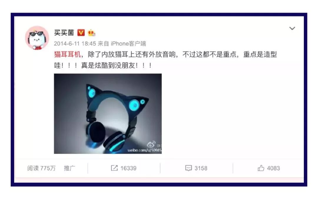 后来小有名气是因为一条猫耳耳机的微博,结果那条微博被转发了上万次,虽然放在现在万转真的没啥,但那时候能一个默默无闻的小透明也能上万转!万转耶!!太激动了!