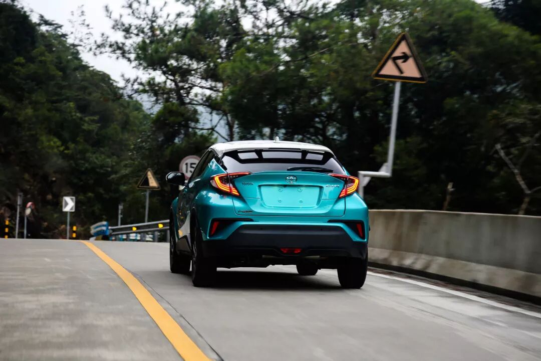 在山路中奔跑,你会发现这台小车真的太灵活了,尤其是从凯美瑞上转过来,C-HR的转向特别的轻,手指轻轻一动,方向盘就会跟着动一样。因为轴距比凯美瑞短,C-HR在山路上看起来就像个灵活的小胖墩,不像凯美瑞有个尾箱,C-HR车头入弯后,车尾就直接跟上。