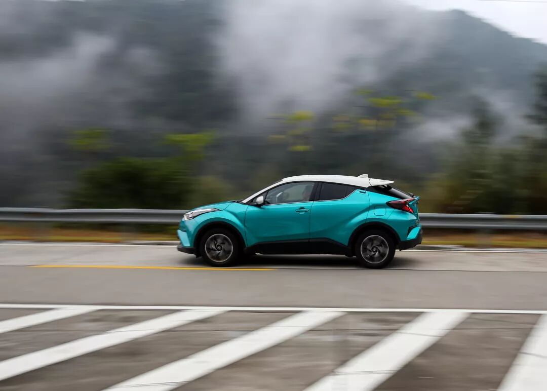 在凯美瑞上撒够了野,我在山顶上跳上了同行的C-HR。说C-HR是一台SUV,好像又不是很贴切,除了离地间隙和重心,无论是造型还是开起来的感觉,跟SUV似乎并不沾边,相反,我更觉得它是一台被升高了底盘的两厢车,说它是跨界车也没有问题。