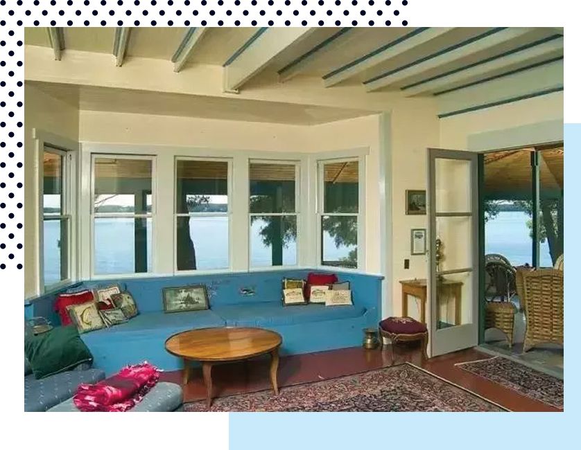 足足有八间大卧室、还有船屋,装修风格偏糖果色复古,这个房子非常适合家庭居住,也非常适合拿来做民宿!