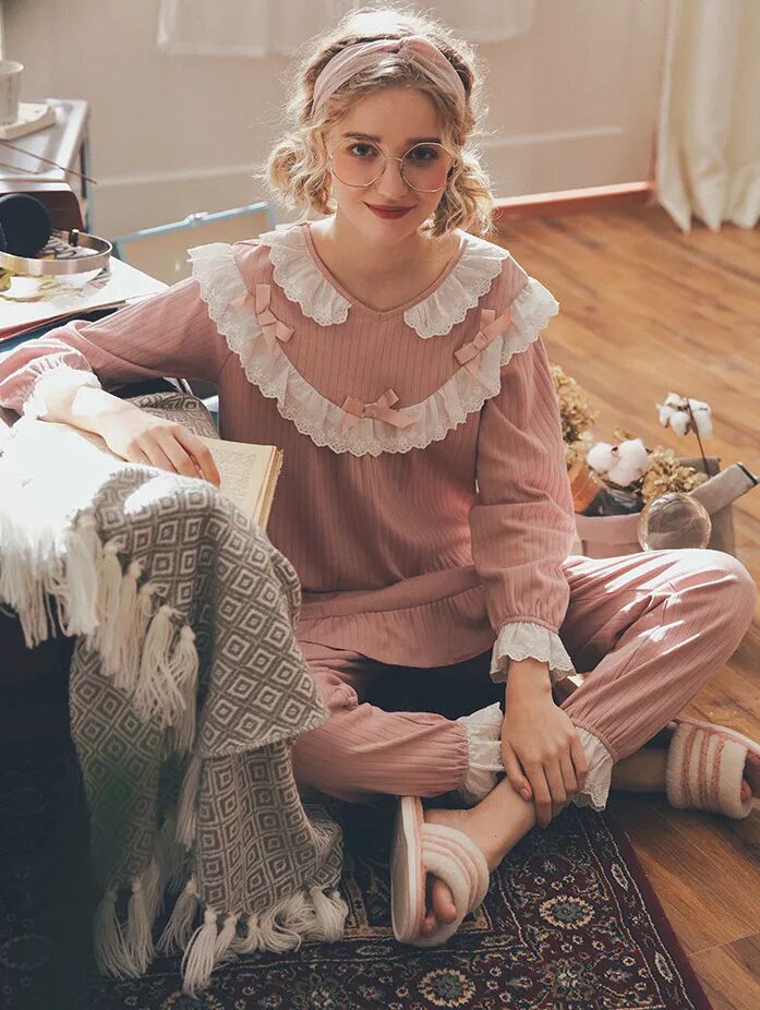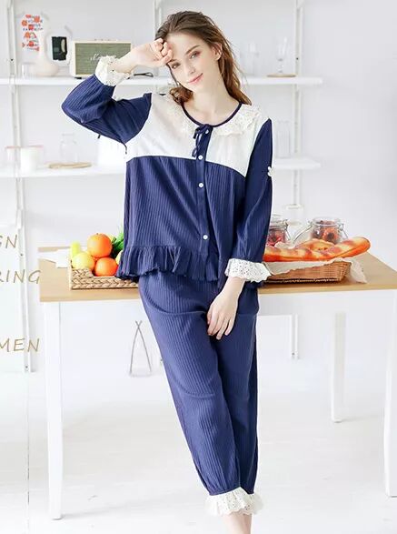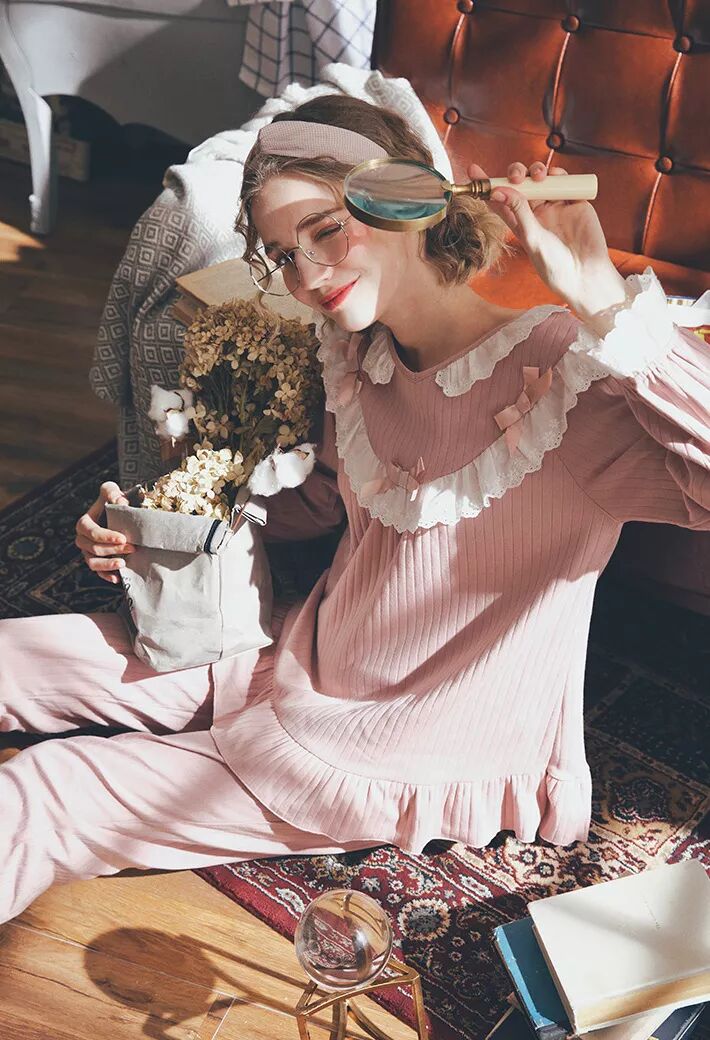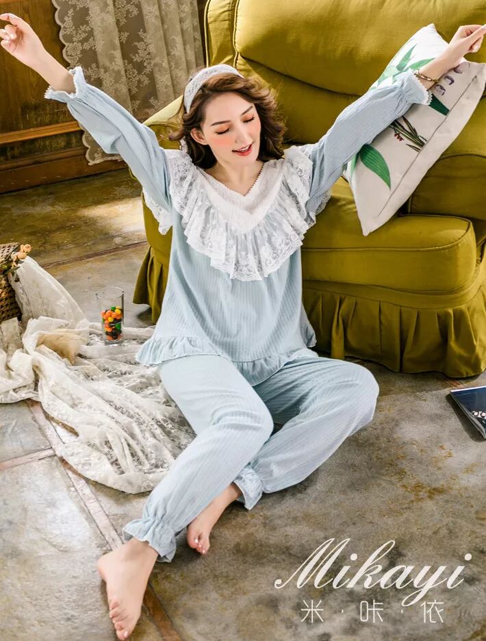 纯棉长袖宫廷蕾丝家居服