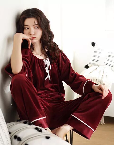 这套一看上去就是满满的圣诞风啊~酒红色显白显气色,颜值没得挑。