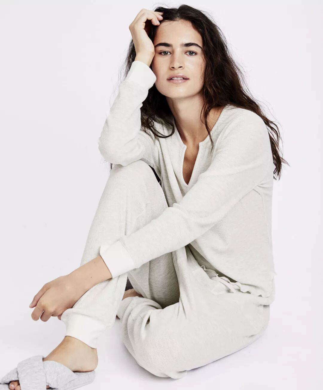这款睡衣的一大优点就是套头穿,简直懒人福音。浅灰色看着也高级。