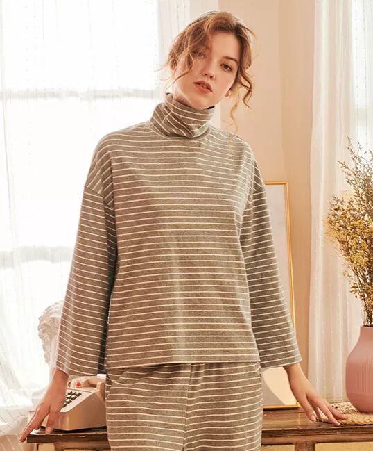 条纹针织高领可外穿家居服