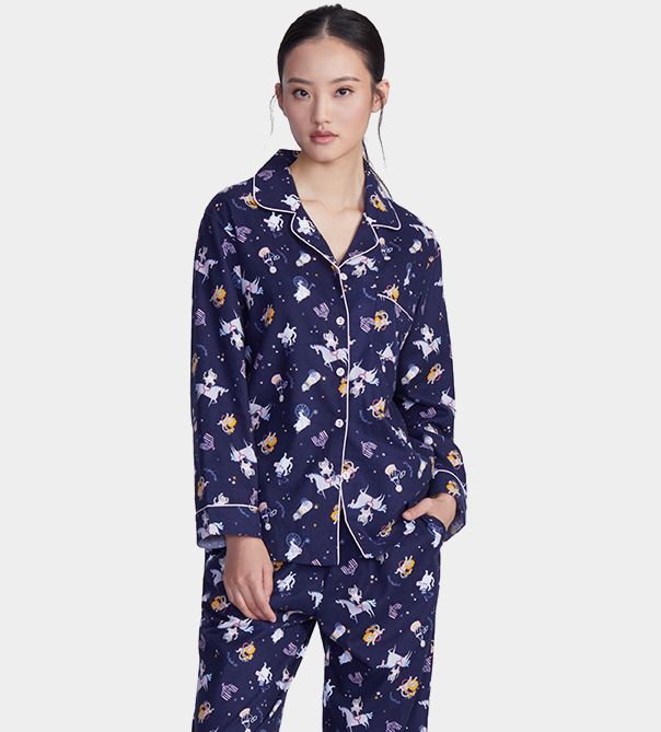 卡通印花翻领长袖睡衣
