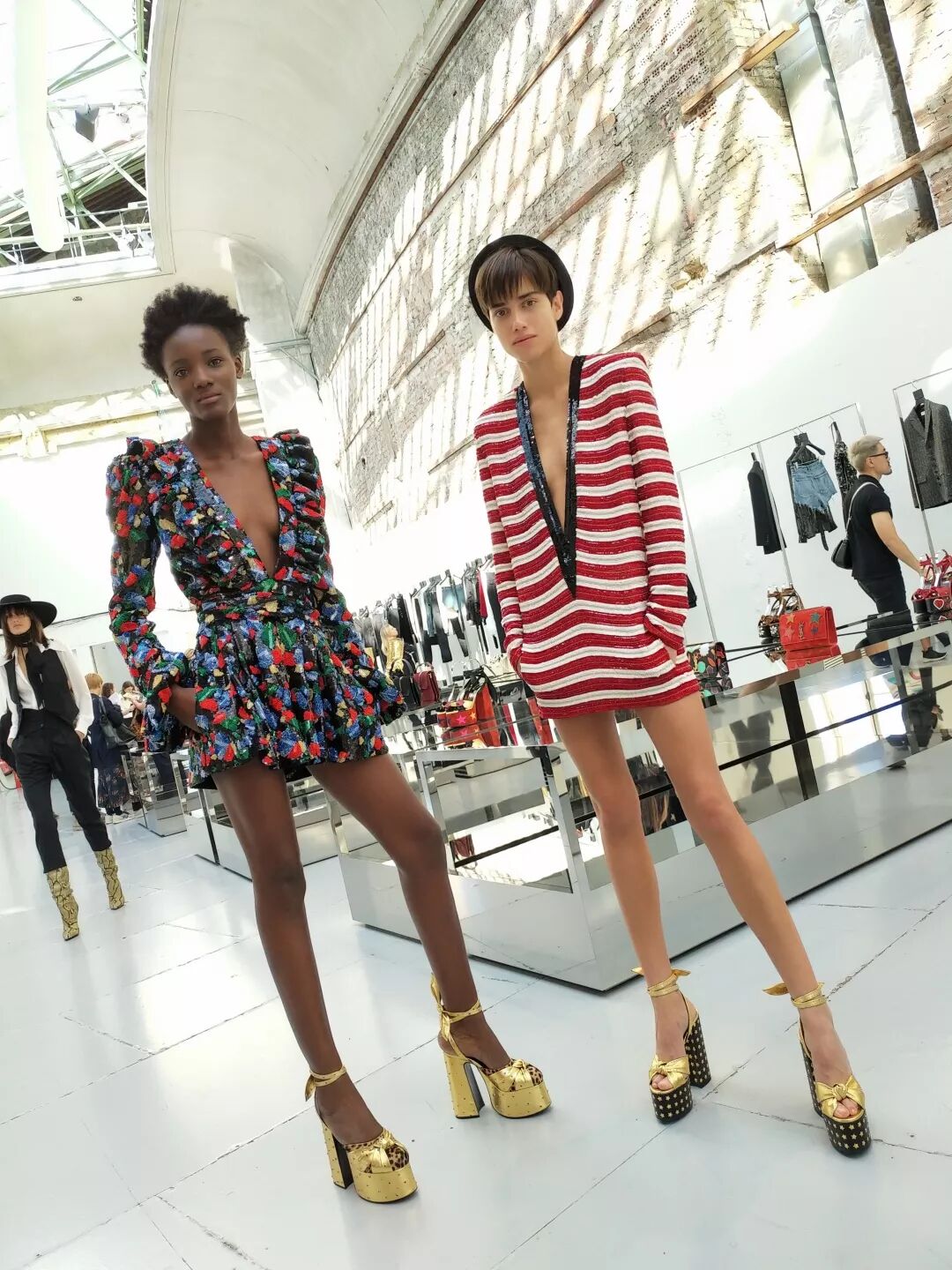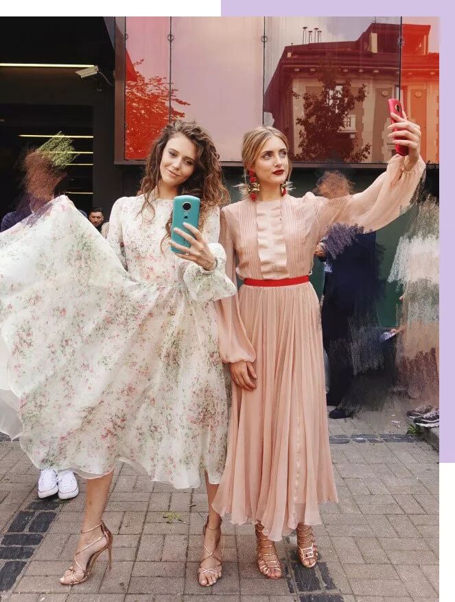 这次时装周上我还意外的看到两位金发美女拿着美图手机在场外自拍,也是人美衣美啦。