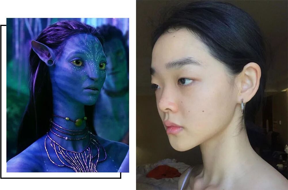甚至还有网友戏称她为“阿凡达超模”,对比一下还真的是有点神似啊哈哈哈哈。